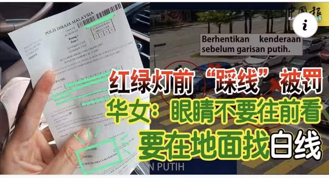 紅綠燈前「踩線」被罰 華女:眼睛不要往前看 要在地面找白線