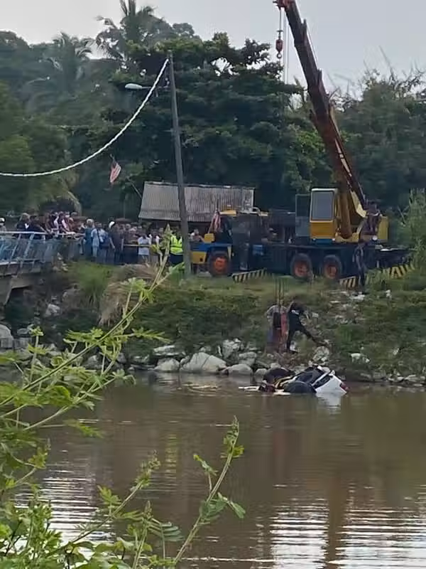 兩名死者為本地暹羅裔的艾協艾葉(54歲)及表弟艾保艾迪(43歲),倆人今日凌晨共車回家,卻不幸的於凌晨1時在甘榜真德隆古堡,連人帶車一起墜下河。