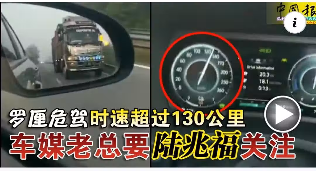 本地汽車媒體」Careta Media」總編輯哈茲里在「X」上傳一則視頻,並在貼文中標記交通部長陸兆福,呼籲政府正視及關注重型羅厘超速問題,不要等到意外發生,才來採取行動。
