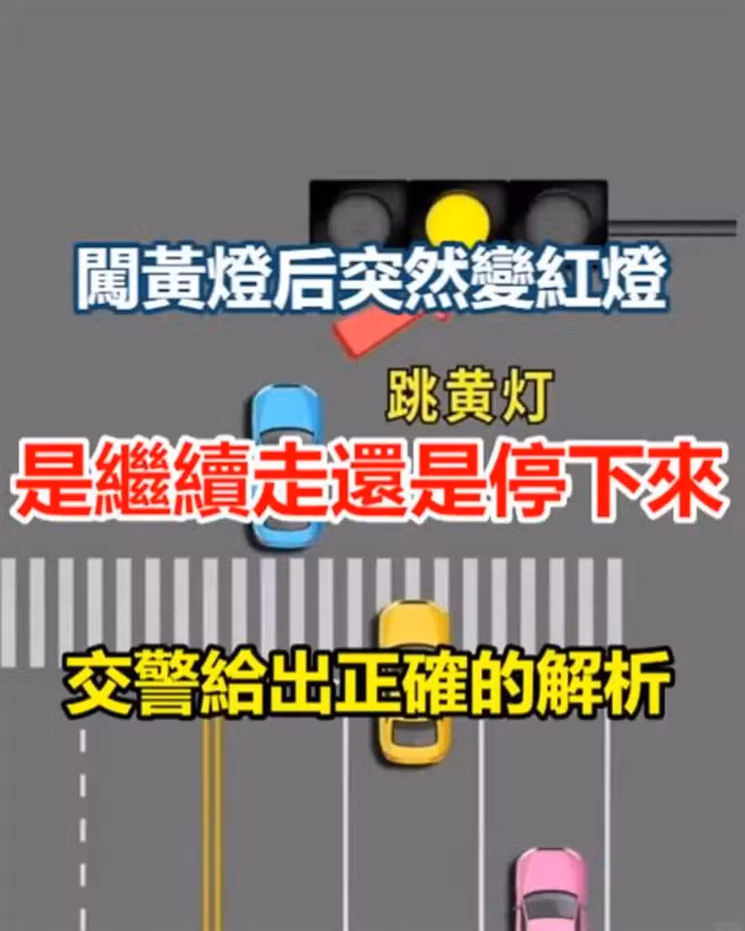 闖黃燈後突然變紅燈,是繼續走還是停下來!交警給出了正確答案!