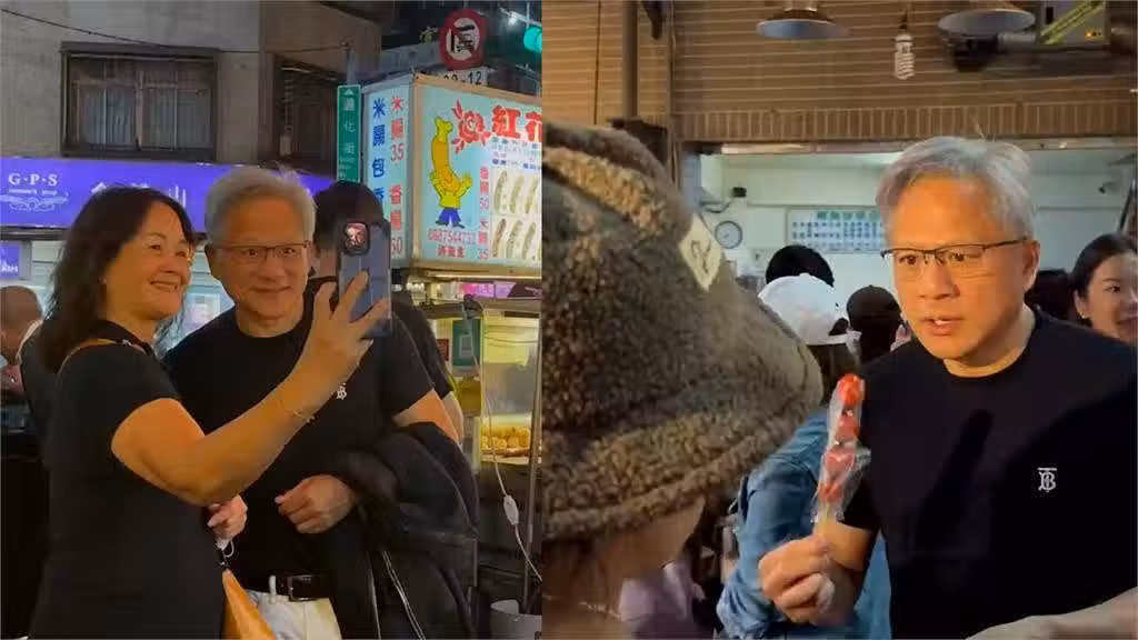 輝達執行長暨創辦人黃仁勳在9號時驚喜現身台灣!他接地氣到臨江夜市大吃許多美食,許多民眾看到後紛紛圍觀搶著拍照,而他也大展親民形象與民眾握手自拍,甚至還自掏腰包請吃糖葫蘆,雖然他頂著一頭白髮但是氣色相當的好,而他也脫下以往的招牌皮衣,展現了不同的另一面。