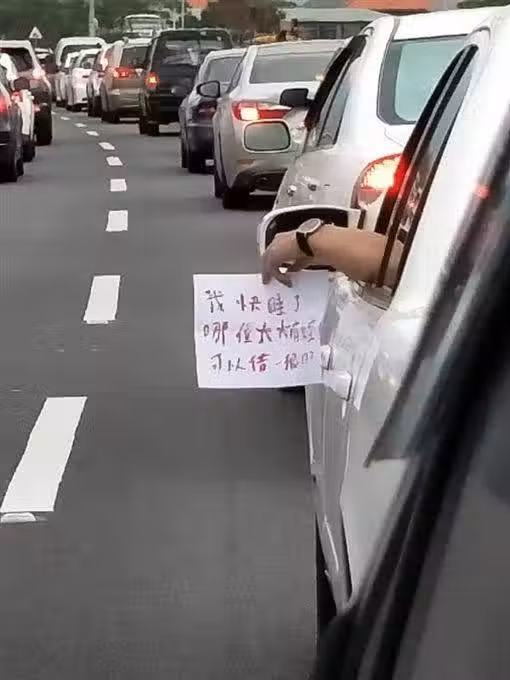 假日出遊塞在國5!愛睏駕駛撐不住「搖下車窗求救」 網細看「紙條上內容」笑歪:不幫沒人性