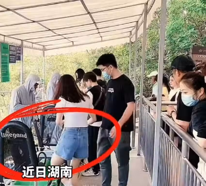 當時的直播,這位妻子進行了錄屏,大家可以看到一個黑體恤男子帶著一個牛仔裙白衣女子,一起坐遊樂設施,兩人先是一前一後,然後坐在了遊樂設施的同一排座椅上。