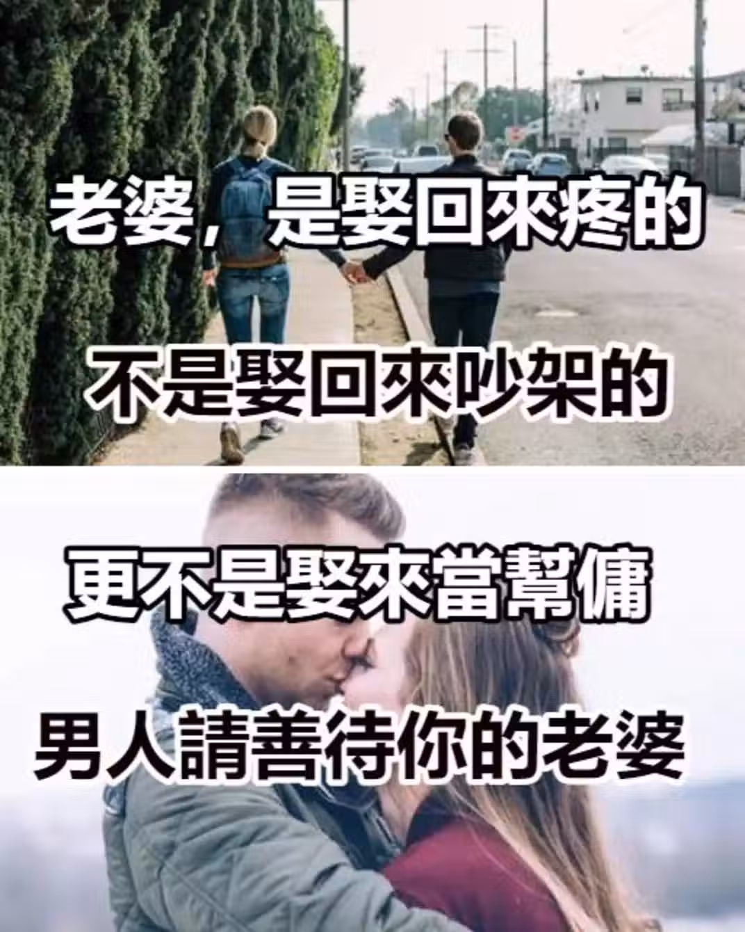 老婆,是娶回來疼的 不是娶回來吵架的,更不是娶來當幫傭:「男人,請善待你的老婆!」!