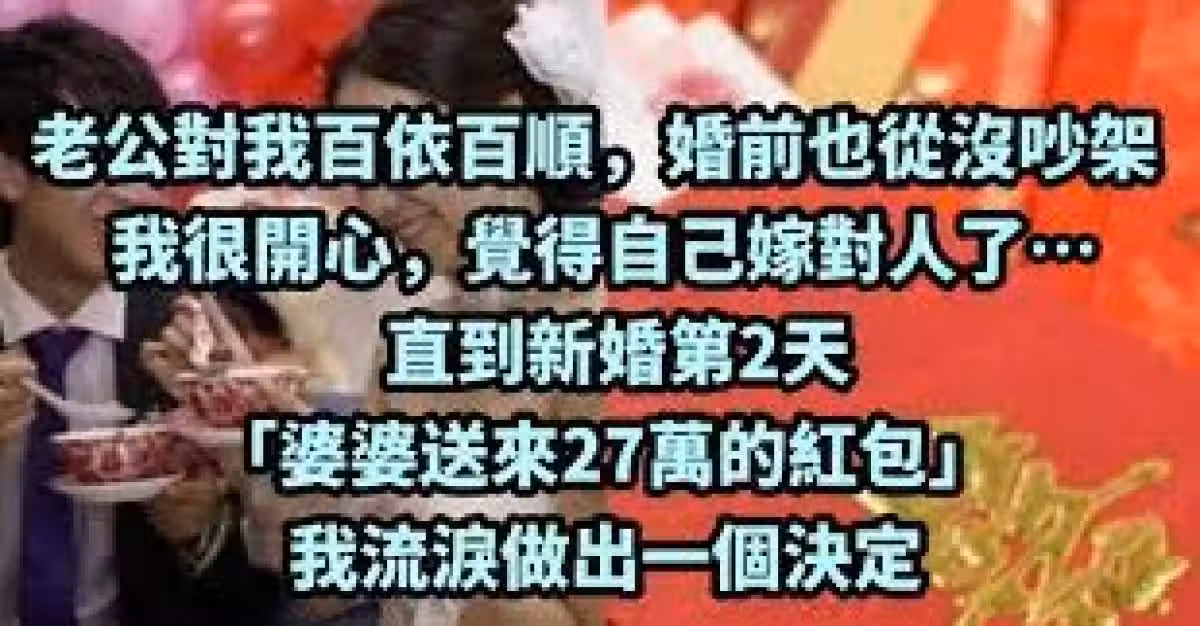 老公對我百依百順,婚前也從沒吵架,我很開心,覺得自己嫁對人了… 直到新婚第2天「婆婆送來27萬的紅包」我流淚做出一個決定