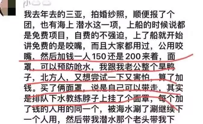 想想就恐怖!一弱女子三亞潛水被教練「取下氧氣罩」威脅加錢拍照,看了評論區才發現:現實比新聞里說的更嚇人