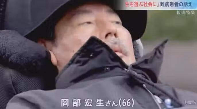 岡部宏生表示,他也曾多次想要自殺。他曾想過從陽台上跳下去,但已經沒有行動力。他也想過不戴呼吸機,很快就會窒息而死。但他最終選擇活下去,想讓更多健康的人思考生命的意義。