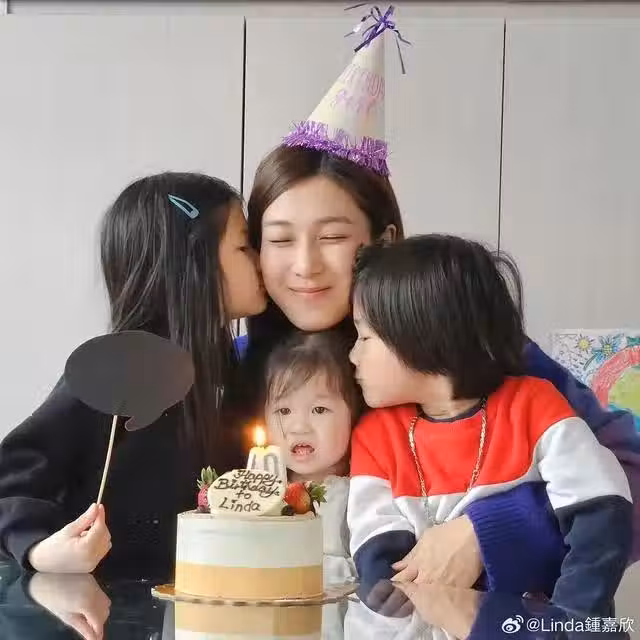 40歲鍾嘉欣曬照慶生,懷抱三個孩子幸福洋溢,倆女兒繼承媽媽美貌