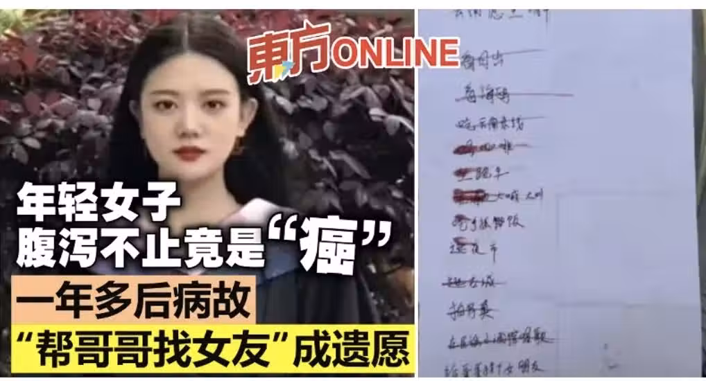 年輕女子腹瀉不止竟是「癌」 一年多後病故「幫哥哥找女友」成遺願