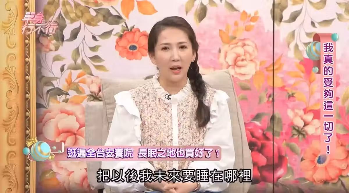 就在全台各處看安養院,林口、新店都有在詢問,林子瑄透露,45歲的她甚至連放棄急救同意書、長眠地都選好了,就是不想讓晚輩操心自己的身後事!