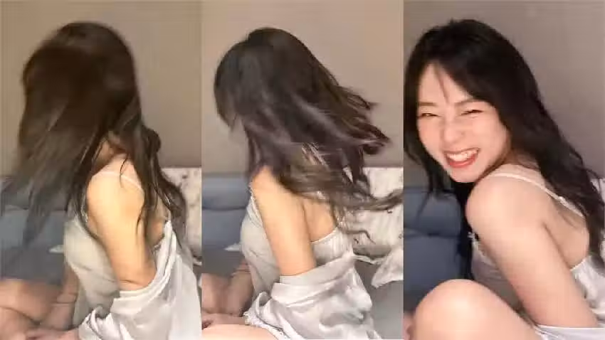 照片中,坐在床上的茵聲穿著絲緞睡衣,內裡穿著細肩帶上衣,露出大片肌膚,外搭的罩衫滑落卡在手臂上,她一邊甩髮、一邊自拍,期間還對著鏡頭露出燦爛的笑容,非常搞怪又可愛,最後一張她終於認真擺拍,雙手抱著小腿,臉上露出嫵媚的神情,模樣十分性感。
