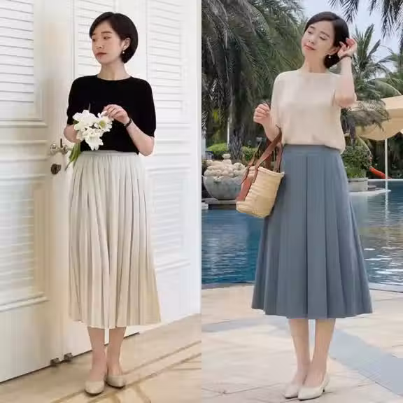 傘裙的裙擺蓬鬆,能夠很好地修飾腿部線條,適合腿型不直或小腿略粗的女性。同時,傘裙還有一定的遮肉效果,能夠隱藏小腿肚等部位的贅肉。