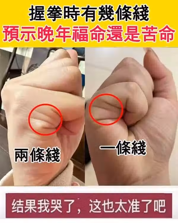握拳時有幾條線,預示晚年福命還是苦命!太準了