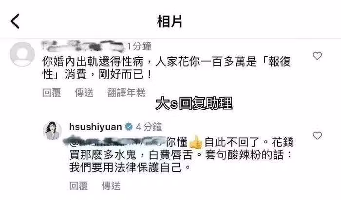 她爆料汪小菲婚內出軌得性病:「人家花你一百多萬是報復性消費,剛好而已。」這句話的重點不是婚內出軌也不是性病,而是大S報復性消費的征服欲。76年出生的大S今年46歲,1993年出道,那時候的她剛滿17歲,正值花樣少女的年紀。