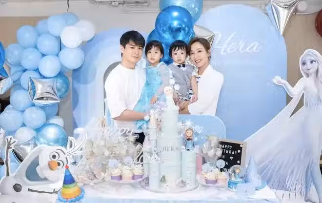 楊怡為4歲女兒慶生,羅仲謙父女嘴對嘴親吻,高顏值姐弟像雙胞胎