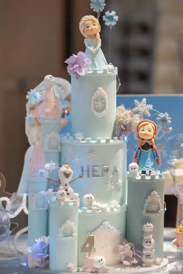 今年楊怡和老公羅仲謙給女兒舉辦了一場夢幻十足的冰雪奇緣主題的生日派對,在生日蛋糕特寫照里,各種動畫人物都出現在了上面,真的好唯美啊。