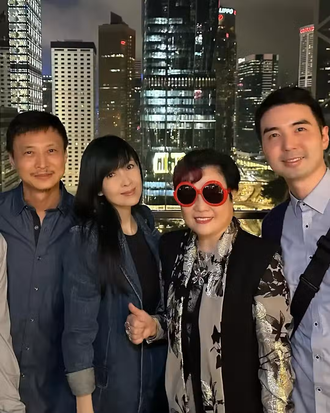資深經紀人陳淑芬和兒子陳家豪與周慧敏倪震夫婦合影。