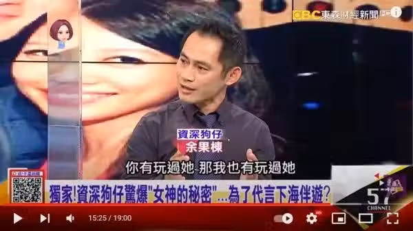 原來該女星剛好要赴某位小開的約,「她去一趟就會有包代言加付費旅遊,據說是1千萬,有沒有做那些事,我們就不得而知。」得知此事的余果棟馬上和長官商量,但最後因不知道女方要飛往日本何處、前往哪間飯店,很難買機票便作罷,成了他狗仔生涯的唯一遺憾。