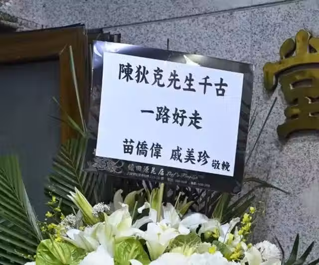 在陳狄克的靈堂上,傳媒也拍到了香港娛樂圈不少知名藝人送來的花牌。其中就包括:鄭少秋、周潤發夫婦、苗僑偉夫婦、錢嘉樂夫婦、黃日華、何廣沛以及劉江等人。