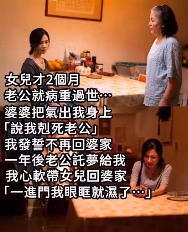 女兒才2個月老公就病重過世…婆婆把氣出我身上「說我剋死老公」我發誓不再回婆家! 一年後老公託夢給我,我心軟帶女兒回婆家「一進門我眼眶就濕了…」
