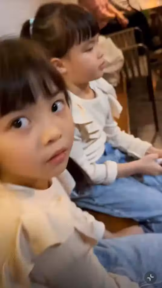身後的妹妹雖然只露出了側臉,但小妮子明顯看著比姐姐要大隻一些,臉蛋兒似乎都要胖嘟嘟一點。不過妹妹倒是和姐姐一樣,都長得爸爸。