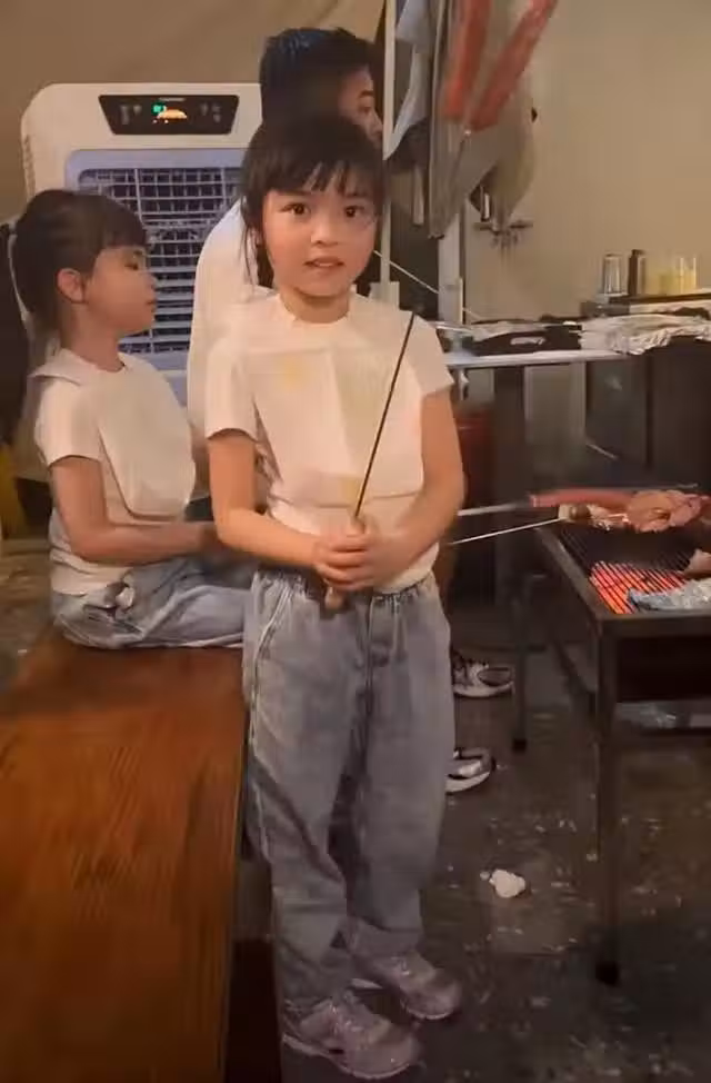 熊黛林拍下了多個大女兒的萌態,姐姐時而拿著烤串的工具賣萌,時而又展現出自己「豪放」的站姿,每一幀都萌得不得了。