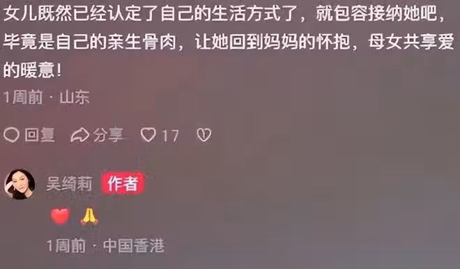 遇到不好的評論,吳綺莉也會留言反駁,力證女兒並不是大家想像之中的那樣子。