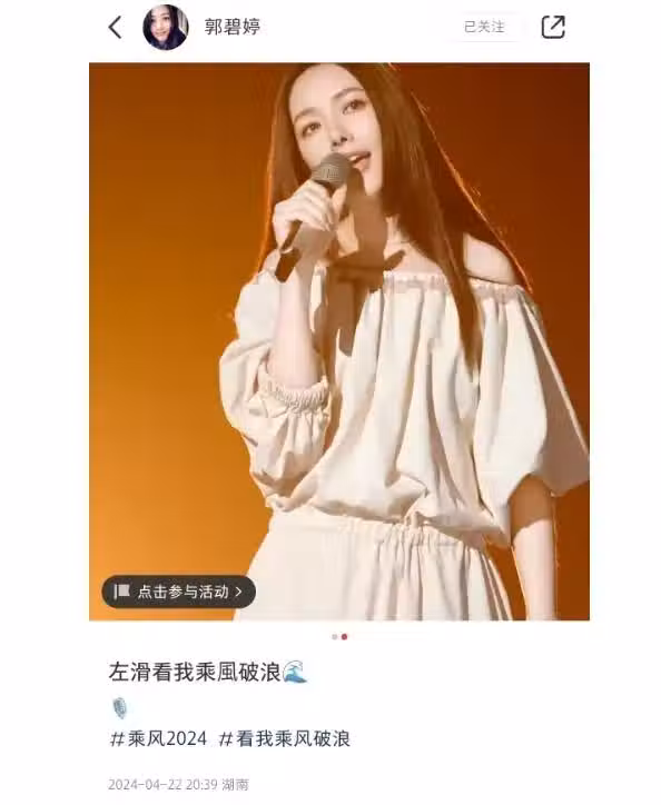 4月22日晚,演員郭碧婷在個人社交平台分享了兩張照片,一張是參加「浪姐」的美照,一張則是童年舊照。自從參加「浪姐」後,郭碧婷營業的頻率明顯多了起來,也讓喜歡她的粉絲們無比欣喜。