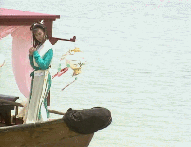 穿上女裝的第一個鏡頭,當黃蓉站在船頭,手指捋著胸前的細辮,嘴角蕩漾出上揚的弧度,一臉嬌羞地喊著「靖哥哥」時,那副柔美可人的樣子,浪漫撩人,甜得人心都要化了。