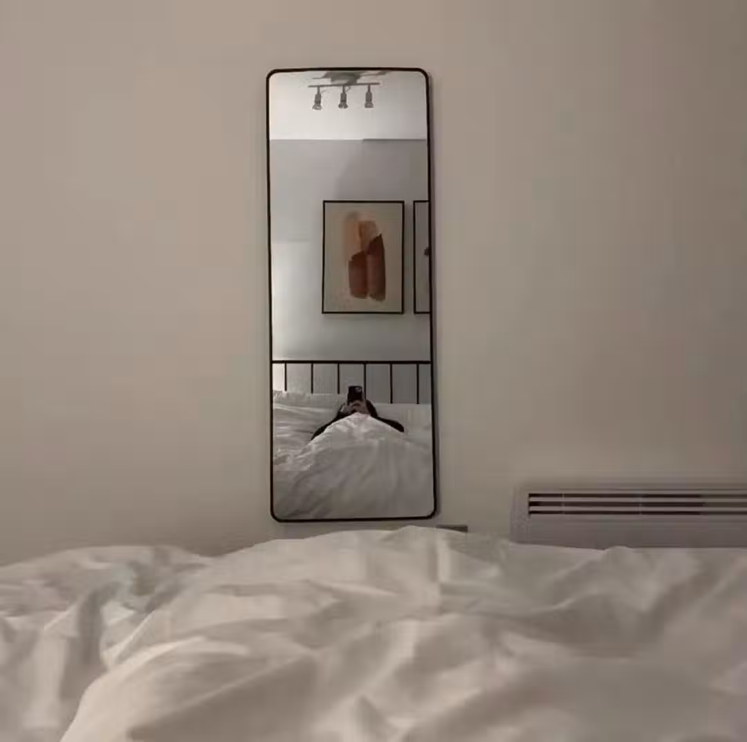 而且,我臥室的燈剛好反射在鏡子中,晚上靠床頭刷手機就很不友好,不小心就會看到鏡子中的反光,很刺眼。