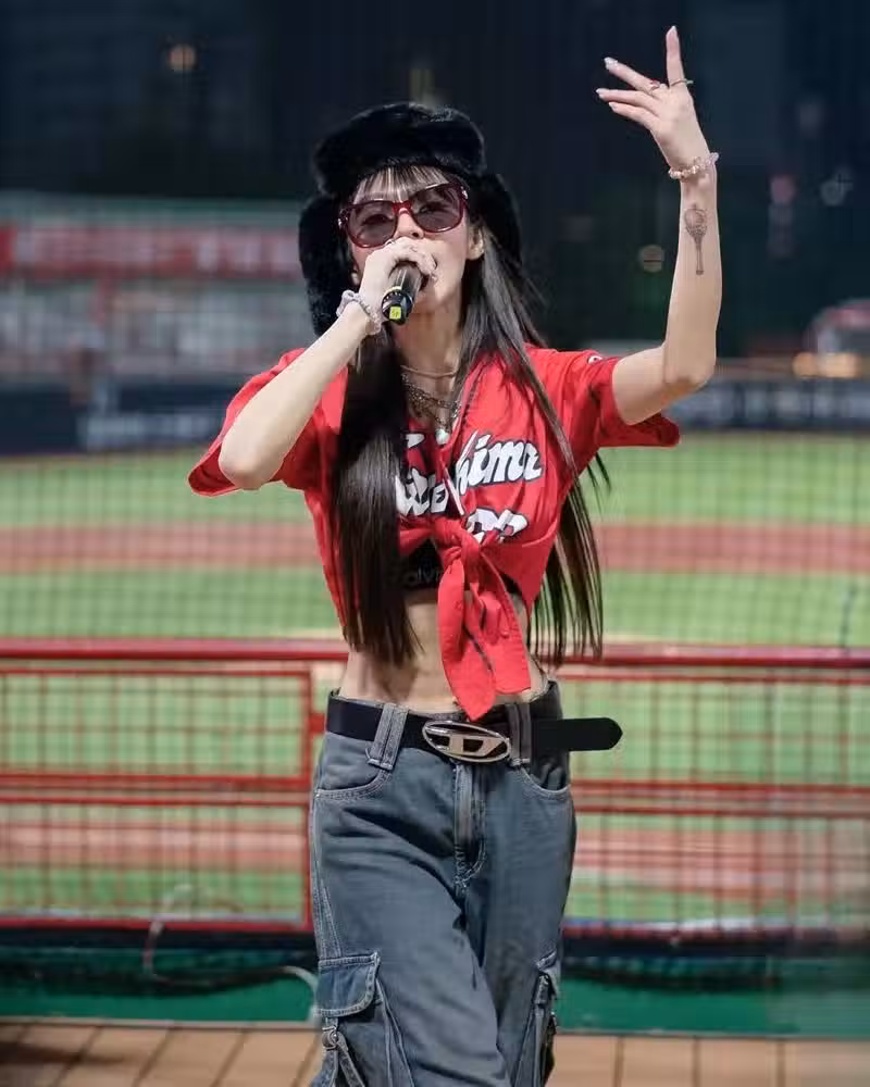 ▲「小龍女」林襄一身嘻哈應援。(圖/翻攝自IG)