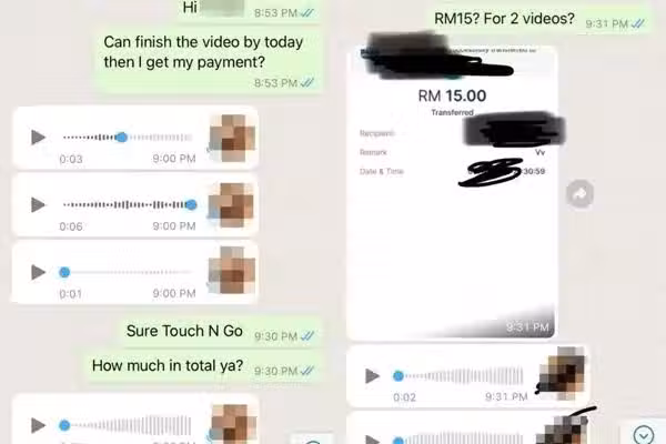 令人驚訝的是,當女學生向網紅討要報酬時,網紅卻表示她剪輯的2支影片費用只有15令吉,讓女學生傻眼不已,要求對方將費用提升到25令吉(約新台幣170元),網紅才心不甘情不願地再把10令吉轉給女學生。