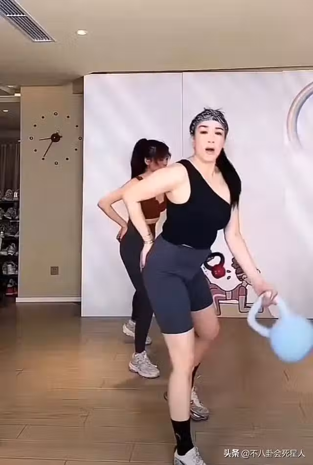 她在直播間裡帶著大家一起跳操,還運用壺鈴等健身小道具,做起動作來很是遊刃有餘,可見平時經常健身運動。