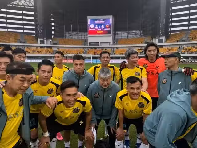譚詠麟日前隨明星足球隊到澳門比賽,同行的有洪天明、張兆輝、陳榮峻、戴志偉及黃日華等。 他們在場邊拍下不少合照,而在更衣室內亦不忘留影。 有同行人士於小紅書分享這次比賽的花絮照,其中一張可見譚詠麟身在休息室穿襪,有網民指:「初看以為上石膏了!」差點以為譚詠麟受傷了還不願休息繼續踢波。