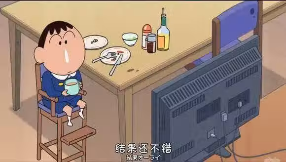 這很明顯是作者故意設置的一個謎點,而臼井儀人老師卻在一集中透露了阿呆在家吃飯的畫面。雖然很普通但是卻和小新家有著很大區別,兒童椅和電視就能看出來阿呆家的經濟一定是不錯的,而且阿呆吃飯的工具竟然是刀叉??你用叉子可以理解,但是用刀叉的話對一個5歲孩子是不是有點危險?