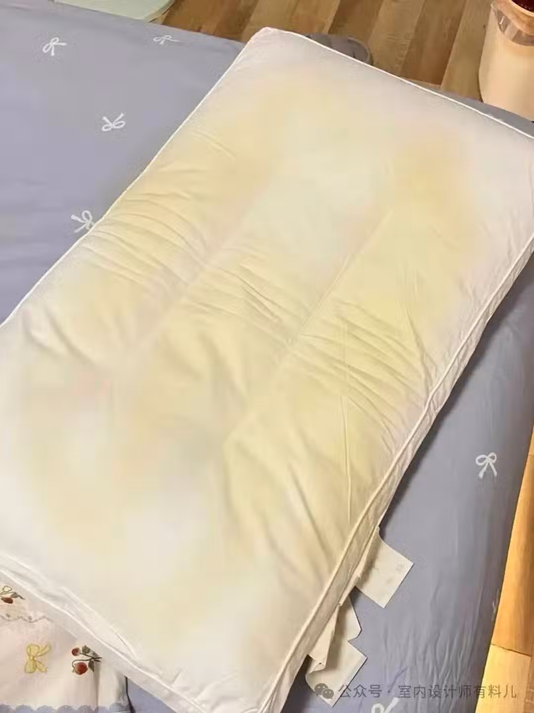 同時,人體每晚會排出約100ml汗水,這些汗水、油脂、頭屑滲透進枕頭內部,給蟎蟲等微生物提供了良好的生存環境,讓它們成倍地增長。 還有,長時間沒有清洗和晾曬的枕頭,汗水、口水、油脂會讓枕頭內部發生霉變,使枕頭產生一股難聞的氣味,這些氣味無形中也影響著你的睡眠質量和生活品質。 因此,枕頭建議使用不要超過1年,而枕巾每半個月就要清洗一次。