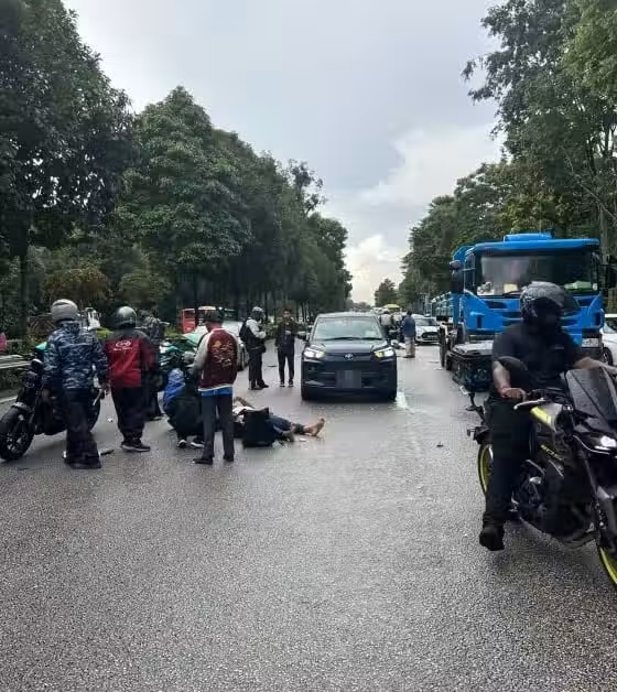 根據網上流傳的視頻,一名傷者平躺在路中央,四周有多名戴著頭盔的騎士圍在他身旁查看,交警也趕到現場支援。