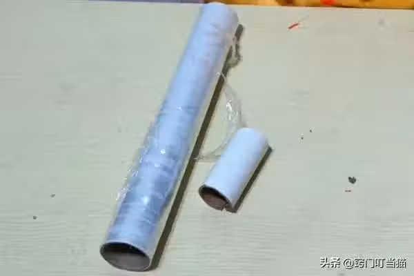 第一步:首先準備一個用完了的保鮮膜紙筒,保鮮膜相信大家家裡都會有,用完的保鮮膜紙筒大家不要扔掉了,我們將保鮮膜裡面的紙筒切成這樣5CM左右的一段一段的。