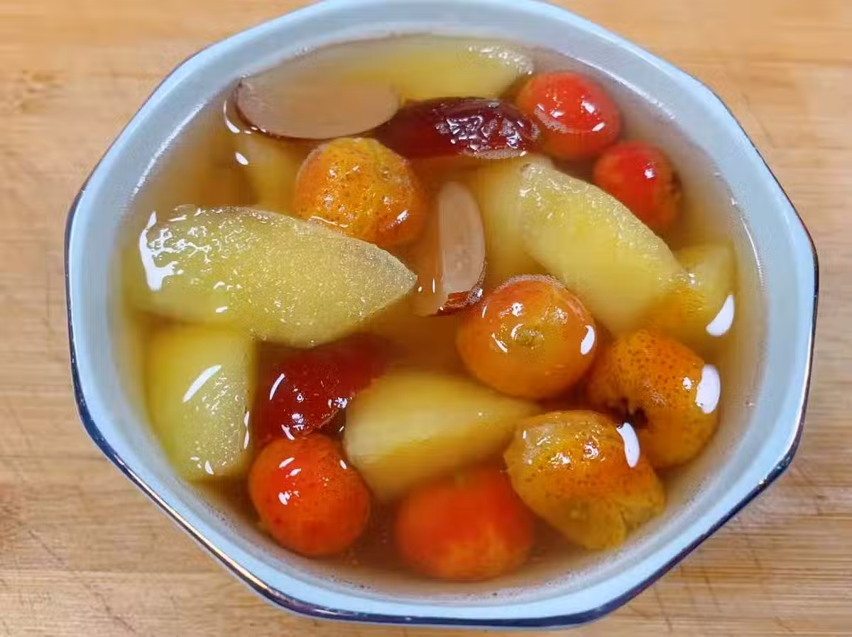 2、冰糖切記不要放太多,口感太甜的話,對嗓子不好,容易出現咳嗽的癥狀。