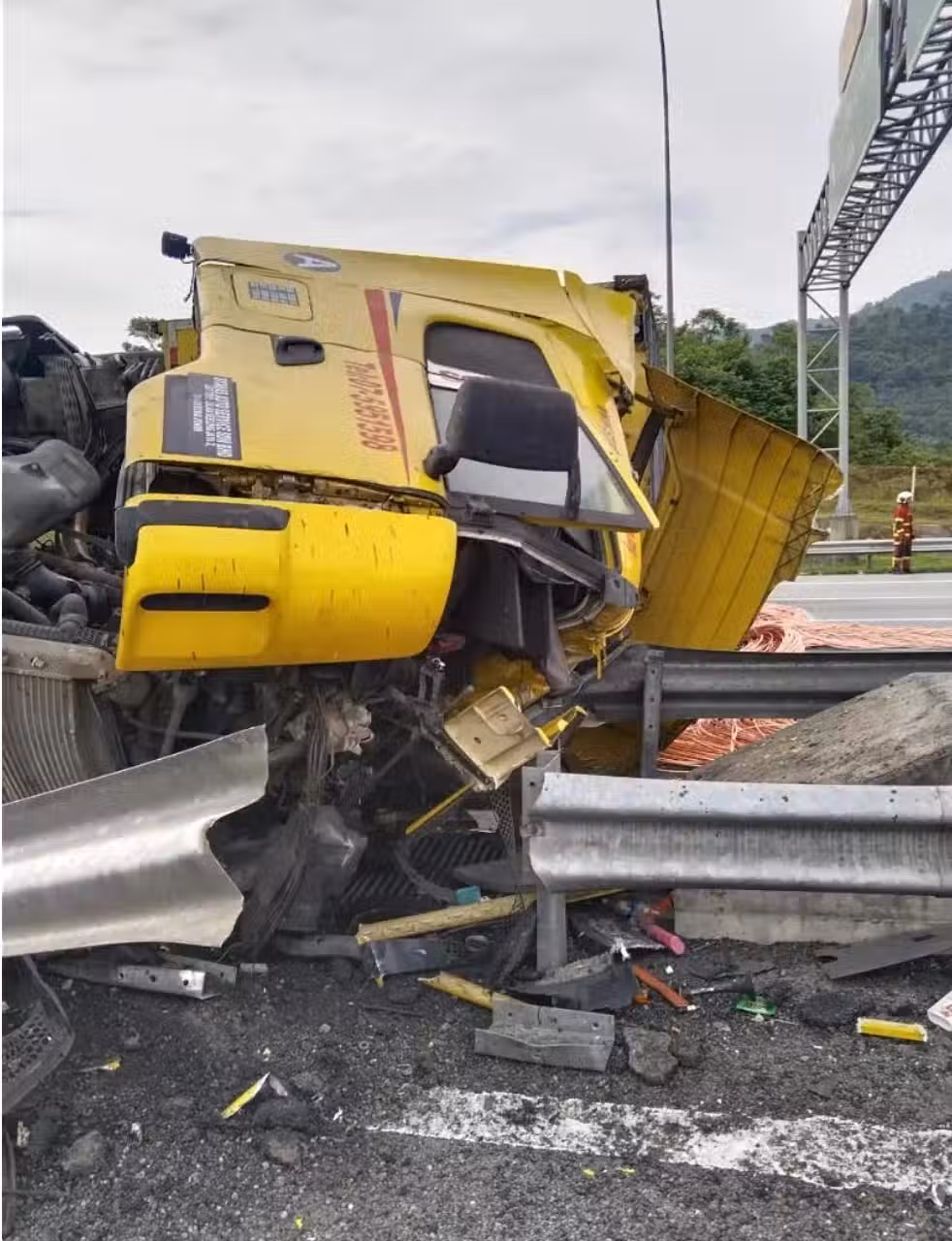 本月6日下午12時30分左右,在南北大道南下方向第243.2公里,因下雨路滑,一輛行駛中寶騰X50車打滑後,令尾隨7輛羅里及轎車相續連環撞,導致運載棕油的油槽拖格羅里失控橫衝直撞向反方向車道,橫側翻在南北大道南下方向路中央,大量棕油灑落一點,造成雙方向車道大塞車。