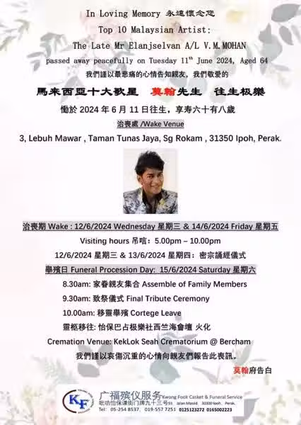 Kris發現莫翰在10日深夜呼吸不順,馬上召救護車送他入院檢查,「可是他當時還很清醒,跟我說他沒有感覺不舒服,直至抵達醫院後才慢慢陷入昏迷,經搶救後不治。」