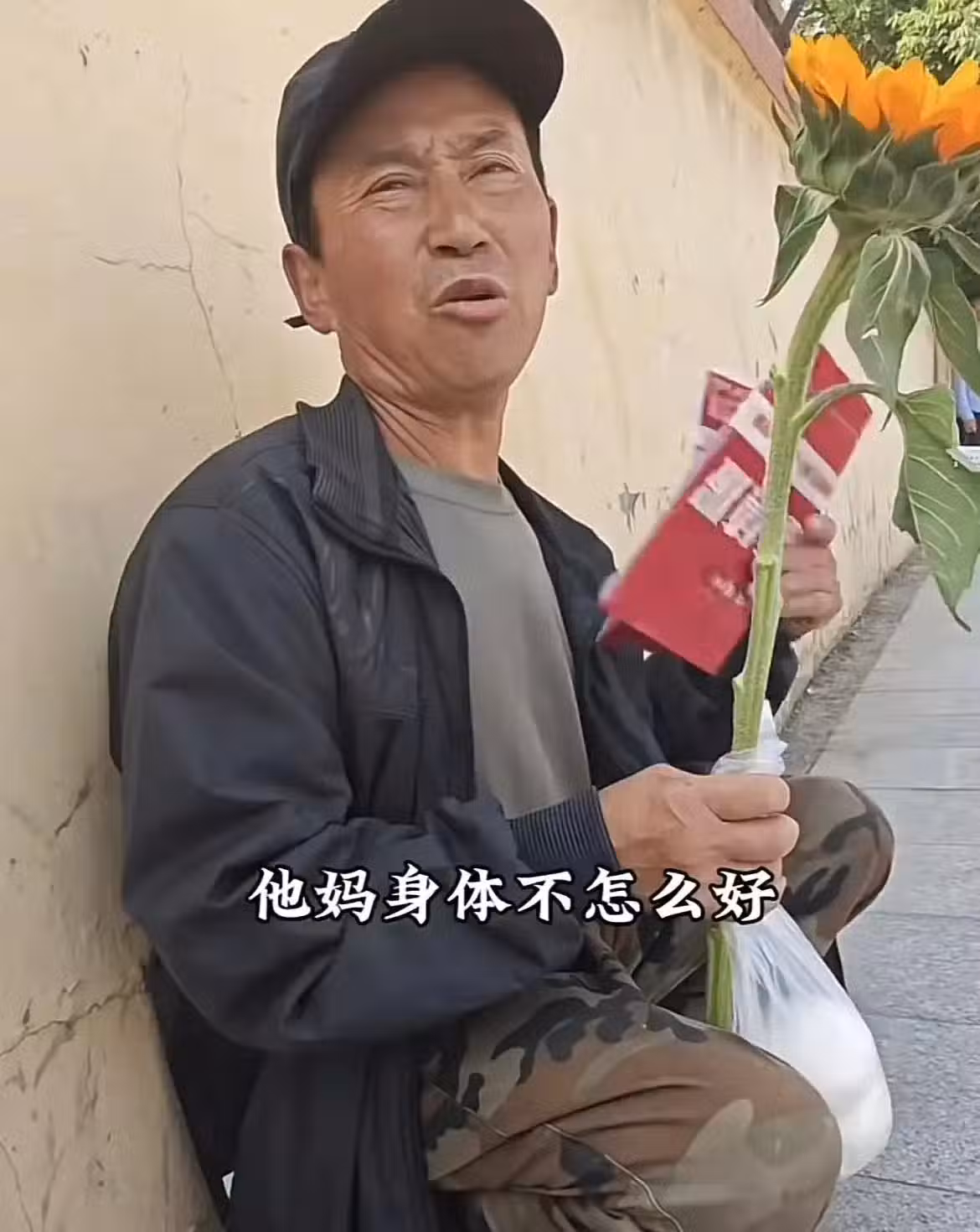 男子笑了:「不是,自己家院子摘的,沒花錢,我看到別的家長都帶著花,也帶了一支。」