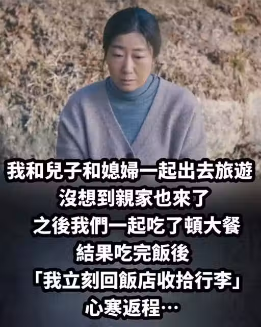 我和兒子和媳婦一起出去旅遊,沒想到親家也來了,之後我們就一起吃了頓大餐,結果吃完飯後「我立刻回飯店收拾行李」心寒地返程~