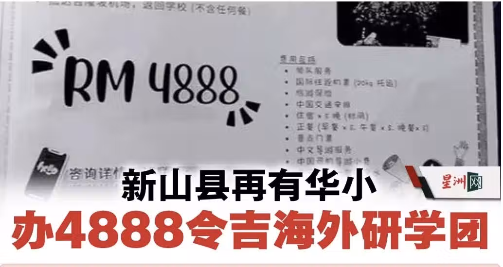 網上流傳的宣傳單顯示,這所華小的河南研學團為期8天,定於今年12月底出發。4888令吉的旅費,包含領隊服務、機票、旅遊保險、中國交通安排、住宿、正餐、景點門票、中文導遊服務、中國司機消費以及每天一瓶礦泉水。