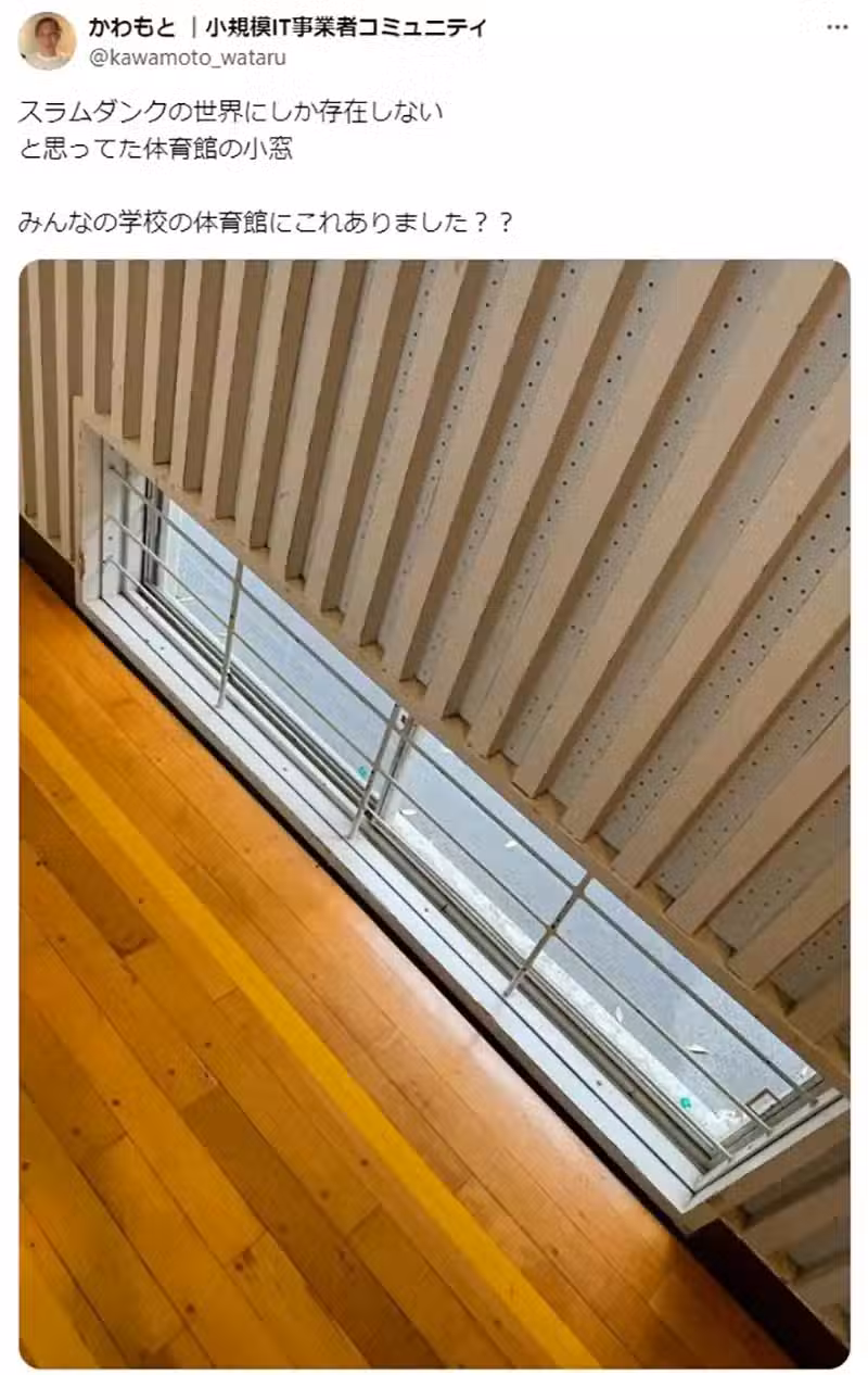這位暱稱「かわもと」的日本X網友,最近分享了一張在學校體育館拍攝的通風窗照片,隨即引發超過10萬個讚的熱烈反響!