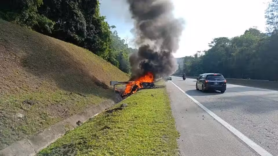 (文冬30日訊)一輛行駛中的藍寶堅尼(Lamborghini)跑車,今早發生車禍後起火燃燒,司機被困在車內活活被燒死,女乘客緊急關頭被路人救出,受傷送院治療。