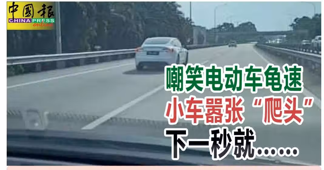 有網友嘲笑電動車行駛緩慢,普通汽車一踩油門就能輕鬆超越。(取自社媒X)
