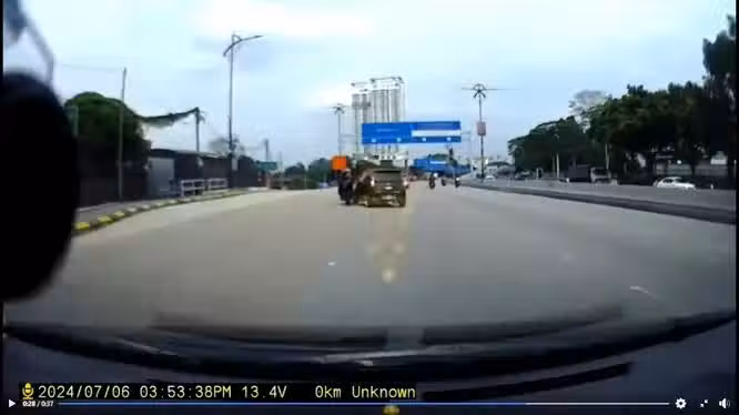 第二國產Viva轎車從右邊的車道加速到左邊的車道,不慎撞到摩哆,並肇事逃逸後被警方逮捕。