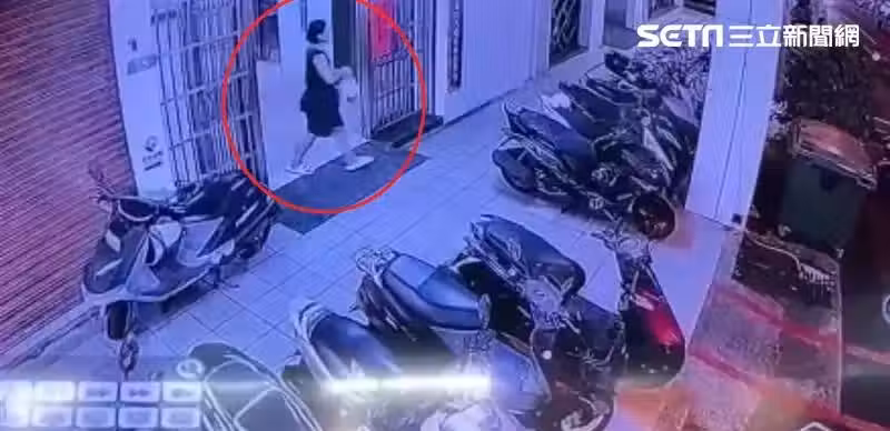 ▲林靖恩看到一處社區大門沒關,自然地走進去,出來的時候手上就多了一袋東西。。(圖/翻攝畫面)