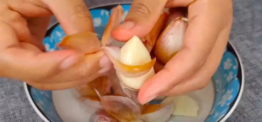 泡濕後,蒜皮就可以完整地剝下來了。浸泡過後,將大蒜放在手心,用雙手揉搓,蒜皮就會自動脫落,非常方便快捷。
